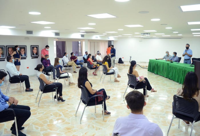 El acto estuvo liderado por el secretario de Educación Luis Alfredo Ortiz junto a Rodrigo Lara Sánchez, decano de la facultad de Ciencias de la Salud de la Fundación Universitaria Navarra; Carlos Alberto Ramírez Cuéllar, rector de la Universidad Antonio Nariño y Alexander Quintero, vicerrector de Investigación y Proyección Social de la Universidad Surcolombiana.