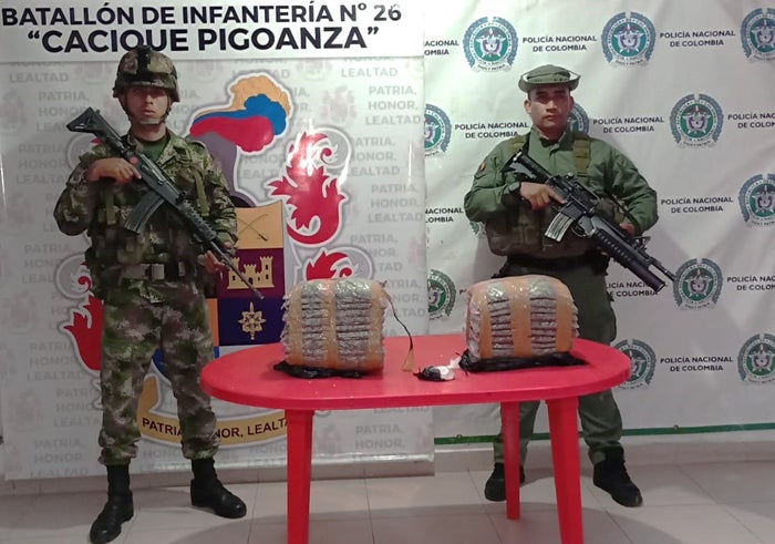 En la vía que del municipio de La Plata comunica con Inzá en el Cauca, las tropas del Batallón de Infantería n.° 26 Cacique Pigoanza en articulación con efectivos de Policía, incautaron 10 kilos de marihuana Creepy que mediante la misma modalidad eran transportados por un motociclista; el hombre fue requerido por las unidades en puesto de control; sin embargo, decide hacer caso omiso y en su huida abandonó el estupefaciente.