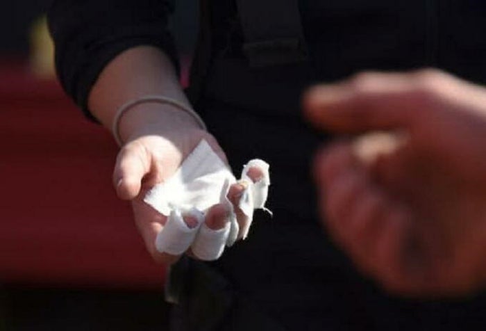 De acuerdo al dictamen médico la víctima "presenta laceración y quemadura de primer grado en manos, menor o igual al 5 por ciento, por lo que se encuentra fuera de peligro".