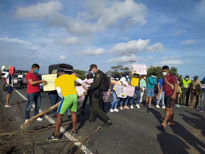 A tempranas horas del día de hoy la comunidad del corregimiento de Camarones se unió a las protestas nacionales, con bloqueos en la Troncal del Caribe, sobre la vía que comunica hacia la ciudad de Santa Marta.