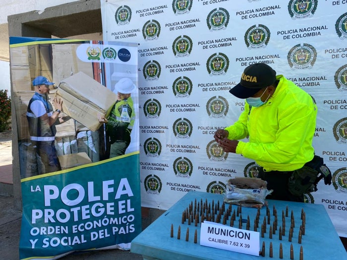 En el desarrollo de controles aduaneros realizados en el municipio de Maicao por los uniformados de la Policía Fiscal, durante la diligencia de visita aduanera a un punto de atención abierto al público de empresa transportadora de encomiendas, luego de una exhaustiva verificación física y documental a las mercancías, se halló en el interior de una caja de cartón forrada en cita transparente, 239 unidades de cartuchos para fusil calibre 7.62 x 39, avaluados en dos millones de pesos, los cuales tenían como destino el municipio de Tumaco, en Nariño.