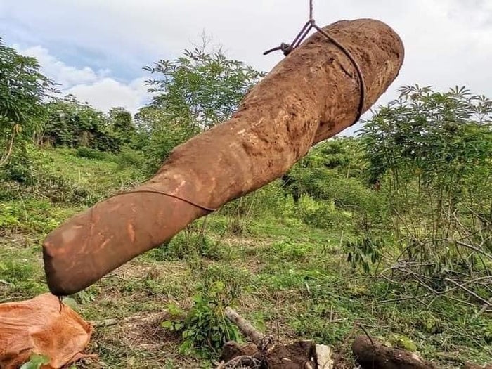 Álvarez asegura que la mata total de la yuca tuvo un peso de 196 kilos, pero una sola yuca, con la que quiere participar internacionalmente, pesó 26 kilos, unas 56 libras.