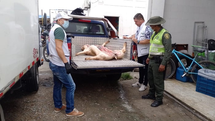 Por su parte, las autoridades ya realizaron el primer decomiso de carne de cerdo, por no reunir las condiciones exigidas para ser comercializada. El operativo, por parte de la Secretaría de Salud de Neiva y la Policía, se realizó en un local comercial ubicado en la avenida ‘Max Duque’, cuando en un centro de distribución de carne de cerdo se decomisaron 90 kilos de carne listos para ser distribuidos, pero el dueño del local comercial no pudo demostrar en dónde habían sido sacrificados los animales.