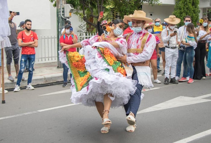 Juanita Ruiz, actual reina departamental del Bambuco, fue la encargada, durante todo el recorrido de la marcha, de mantener vivo el folclore opita con sus majestuosas interpretaciones del Sanjuanero, pero también bailarines, malabaristas, payasos, zanqueros y un conjunto de artistas deleitaron a los presentes durante esta gran jornada que desde las 8:00 de la mañana de este miércoles, se pusieron cita en diferentes puntos de la ciudad, con el propósito de desarrollar esta movilización pacífica.