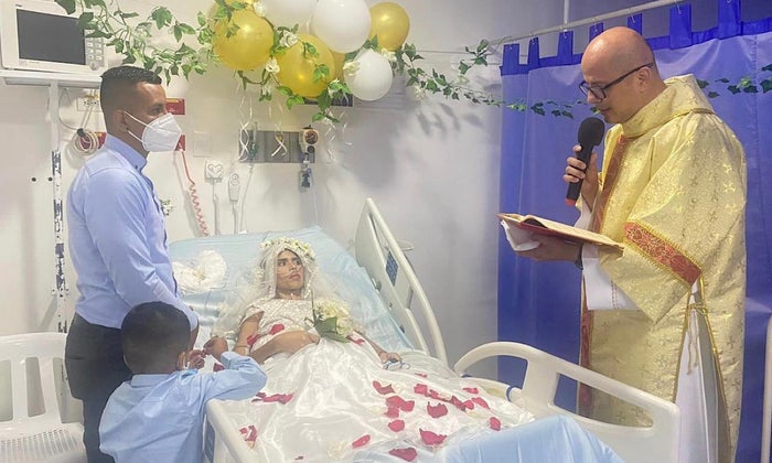 El pasado martes 08 de noviembre del 2022, en las instalaciones del la E.S.E Hospital Universitario Hernando Moncaleano Perdomo, de la ciudad de Neiva, se vivió un momento emotivo, pues la institución cumplió el sueño de unir en el sagrado vínculo del matrimonio, bajo la bendición de Dios, a una de las pacientes oncológicas de 27 años de edad.