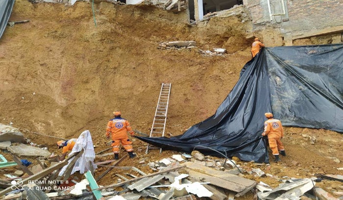 Como una medida de mitigación los integrantes de la Defensa Civil de Convención han instalado plásticos en la parte alta del barrio La Primavera para evitar que las fuertes lluvias causen filtraciones y posteriormente deslizamientos.