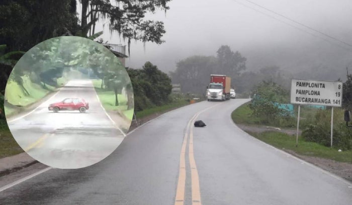 Autoridades en Norte de Santander, como medida de prevención, dieron la orden de cierre total de la vía nacional, Cúcuta–Pamplona, en el sector La Palmita, en donde se verifica el contenido de una bolsa abandonada sobre la calzada.