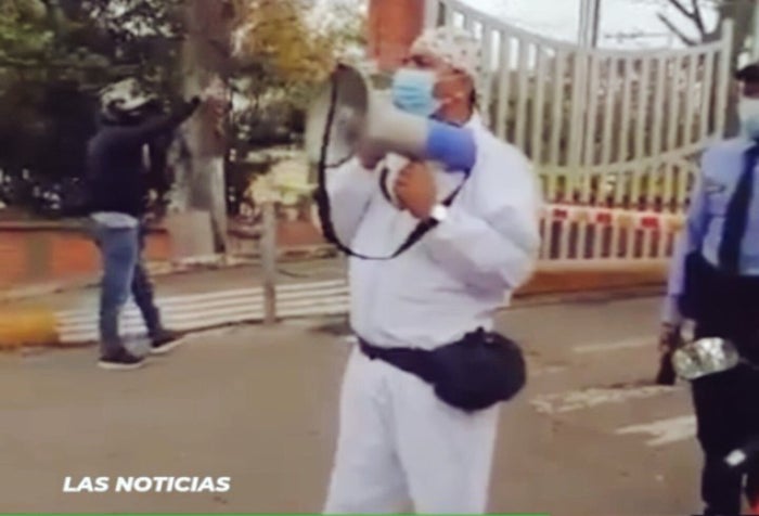 Con megáfono en mano, un enfermero del hospital Emiro Quintero Cañizares, anunció la decisión de cerrar dicha institución debido al colapso que se registra en las unidades respiratorias del centro asistencial.