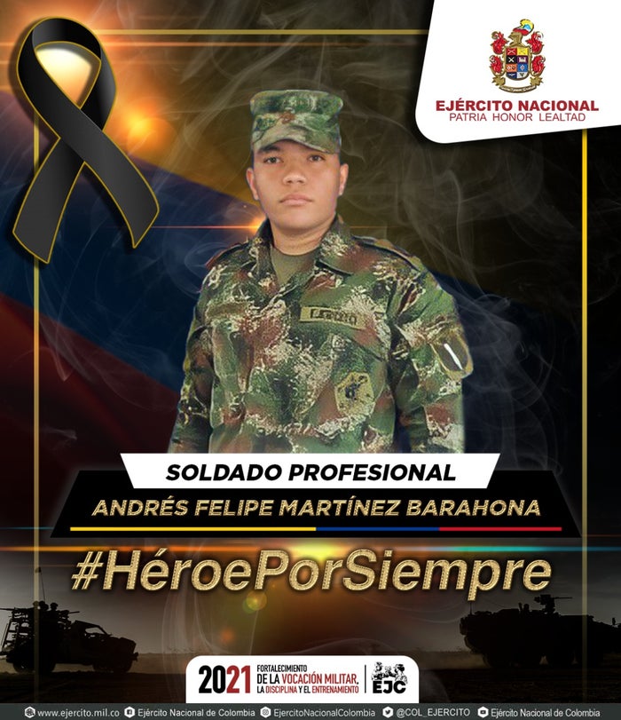 "A la familia de nuestro soldado Martínez le enviamos un saludo solidario de condolencias y de total apoyo, y para nuestros militares heridos esperamos su pronta recuperación. No escatimaremos esfuerzos en el desarrollo de operaciones para dar con los responsables de este vil acto terrorista", dijo el comandante de la Brigada Treinta del Ejército, el General Fabio Caro Cancelado.