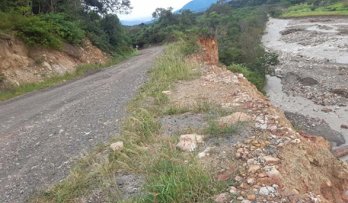 “La vía está totalmente en mal estado, el río cuando crece se sale de su cauce y llega a la carretera, y posiblemente se llegue a llevar una parte de la banca de la carretera, y podemos quedar incomunicados con varias veredas” indicó Fideligna Gómez, vicepresidenta de la junta comunal de Juan Frío.
