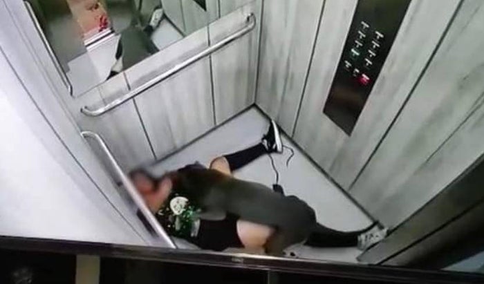 Una vez ingresaron al ascensor, la joven se ingenió la forma de oprimir el botón que la llevara al primer piso, una vez llegó allí y se abrieron las puertas, el animal la dejó de atacar de inmediato.