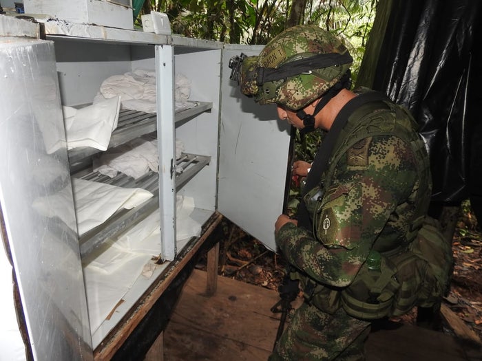 Son más de 32 mil millones de pesos, que afectan directamente las economías y finanzas ilegales del Grupo Armado Organizado GAO ELN, a quien pertenecerían los cinco laboratorios, dijo el comandante de la Brigada Treinta del Ejército.