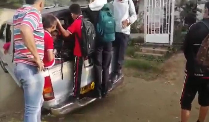 “Los niños van en sobrecupo en esas camionetas, los videos muestran como los niños van colgados en la parte de atrás, tememos que se caiga un niño, se voltee una camioneta y tengamos un accidente, ¿después quién le responde a uno por sus hijos?, entonces necesitamos nos garanticen un transporte escolar idóneo para nuestros niños”, señaló Aníbal Flórez, padre de familia.