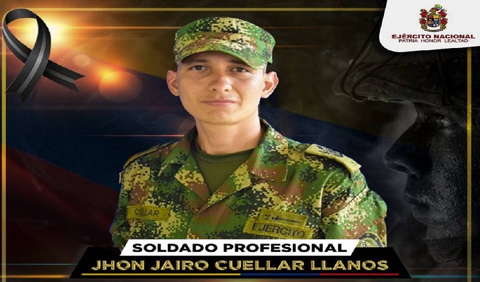 “El soldado profesional Jhon Jairo Cuéllar Llanos, con 14 años de servicio en la institución y oriundo del municipio de Morelia, Caquetá, murió en el lugar”, indican en un aparte del comunicado emitido.