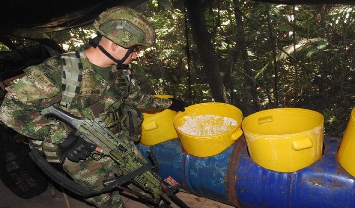 En medio de la operación San José, tropas del Ejército Nacional en un trabajo en conjunto con miembros de la Fuerza Aérea Colombiana (FAC), coordinada con uniformados de la Policía Nacional y el CTI de la Fiscalía General de la Nación, lograron ubicar y destruir un laboratorio para la producción de clorhidrato de cocaína, perteneciente, al parecer, al ELN.