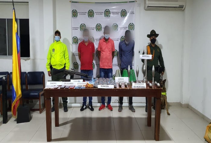 A estas personas, se les incautó (2) fusiles FAL calibre 7.62mm con (2) proveedores para los mismos, (2.000) cartuchos calibre 7.62mm, (1) mortero de 60mm con (10) granadas para el mismo, (32) detonadores eléctricos permisibles y (3) cargas dirigida tipo abanico.