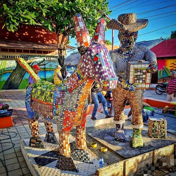 El barrio donde está ubicado el monumento, el parque El Trébol, nuevo hogar de la burra, se transformó en su totalidad para darle la bienvenida a esta escultura, las casas de palma ubicadas en este sector se convirtieron en lienzo, donde se plasmaron coloridos paisajes para ir acordes a los tonos de la escultura hecha con Trozos de porcelanas de colores fuertes.