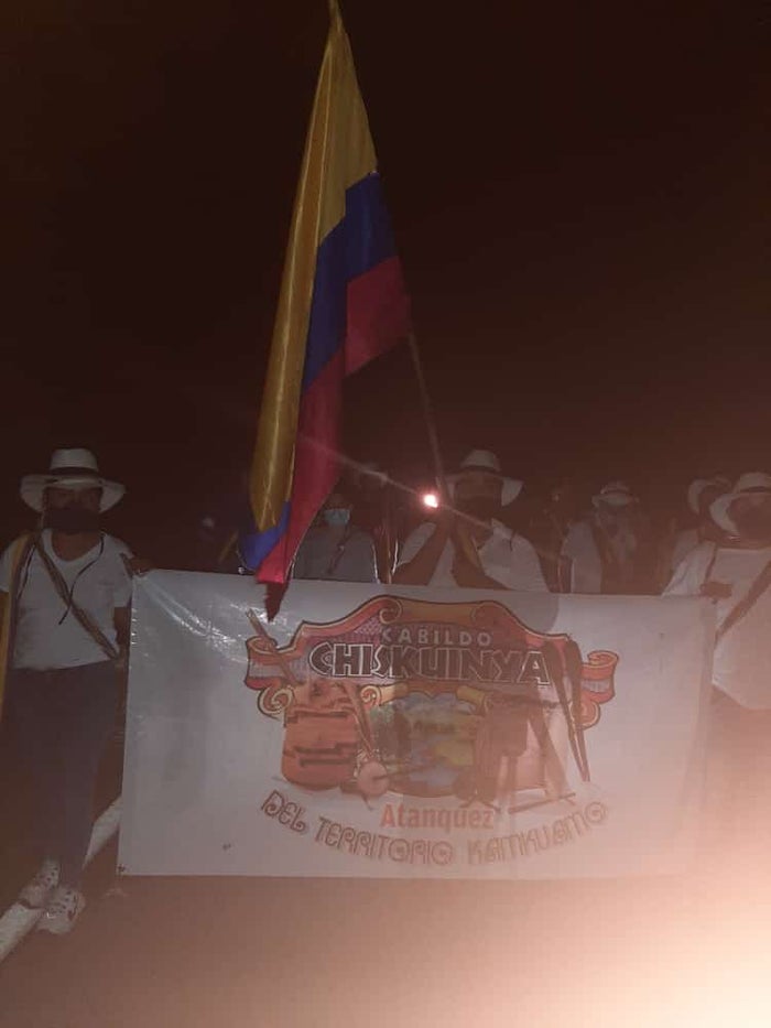 Los representantes del resguardo Chiskuinya en las últimas horas caminaron desde el corregimiento de Río Seco, hasta el palacio municipal para exigir que el alcalde y al Ministerio del Interior que los reconozca como nueva autoridad indígena.