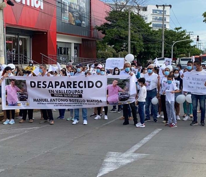 El comerciante Manuel Botello Riatiga, de 56 años de edad, se encuentra desaparecido desde el pasado 26 de julio, esta persona salió de su vivienda en el barrio Los Fundadores de Valledupar y desde entonces no han vuelto a saber de él.