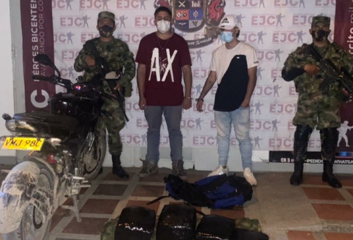 Por el hecho fueron capturados dos sujetos que se movilizaban en una motocicleta con el estupefaciente incautándose 13 kilos de marihuana Cripy.
