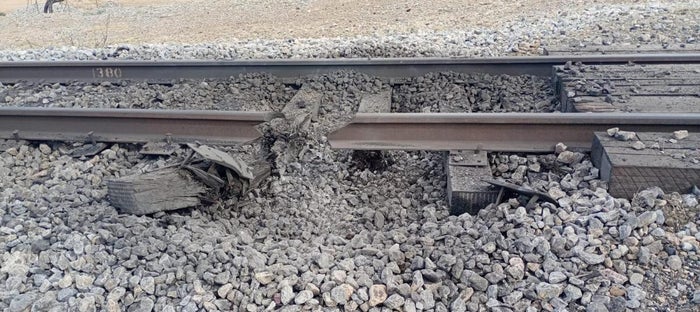 Cortesía comunidad Daños en la línea férrea ha dejado atentados con explosivos.