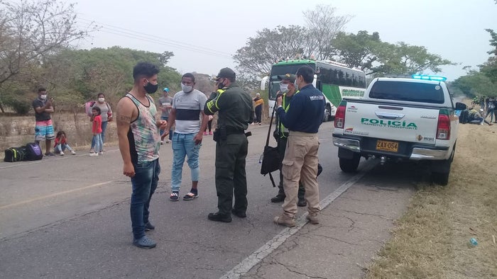 Los migrantes venían procedentes de Bogotá con destino a la frontera, sin contar con la autorización y la coordinación de Migración Colombia y la Policía de Carreteras para utilizar el corredor humanitario en el Puesto de Control de Paraguachon La Guajira.