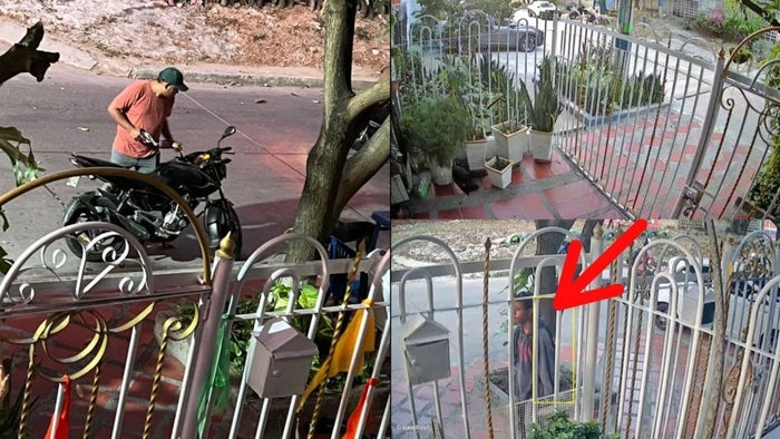En uno de los videos se observa a un sujeto acercarse sigilosamente al enrejado de una vivienda y sustraer una escoba sin mayor dificultad. En otra grabación se aprecia a un hombre que, tras cometer un hurto, aborda una motocicleta negra de alto cilindraje.