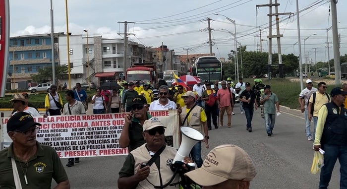 Veteranos y pensionados de la Policía llevaron a cabo una manifestación pacífica durante la mañana de este viernes en la Avenida Circunvalar, con el fin de dar a conocer su descontento por cómo se maneja la parte administrativa en la Clínica de la Policía y la prestación en el servicio de la salud.