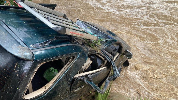 “Estos derrumbes lo que hicieron fue empujar el vehículo hacía el río Bache, gracias a Dios que nos permitió de que resultaran heridos y no quedaron tapados totalmente por el derrumbe”, dijo Conde.
