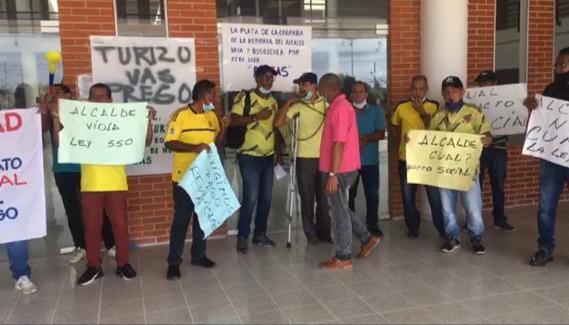 Un grupo de exfuncionarios de carrera administrativa del antiguo Acueducto de Soledad, en el Atlántico, adelantó un plantón en la sede de la Alcaldía municipal, en protesta por la falta del pago de salarios caídos, prestaciones, pensiones y otros beneficios, que adquirieron en legítimo derecho durante años de vinculación laboral.