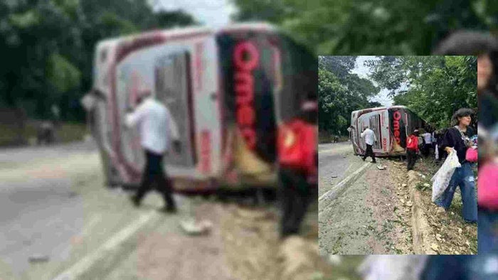 Bus con 42 pasajeros se volcó en vía Sardinata–Cúcuta y dejó varios heridos