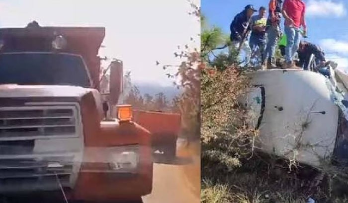 En las imágenes se puede ver cómo la volqueta invade de manera sorpresiva el carril por donde se transportaba el vehículo donde iban los menores.
