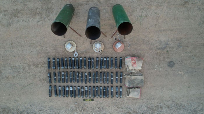 Según las autoridades, los uniformados del grupo Maza se enfrentaron con los presuntos integrantes del Eln que terminó con la captura de Richard Eduardo Rivera Vargas y Alexander Suárez Barroso, quienes tenían tres rampas de lanzamiento con al menos 57 tatucos, listos para ser activados a través del sistema de cable mando.