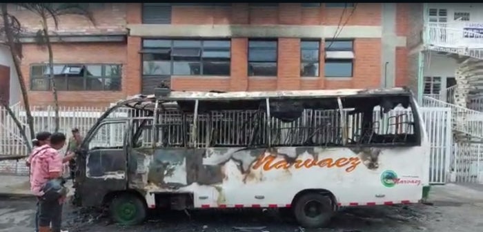 “Se presentó un incendio de una buseta escolar, el 90% del vehículo quedó calcinado; también tuvimos afectaciones en el liceo por el humo que entró a algunos salones. No hay personas lesionadas porque al momento de la emergencia el colegio no estaba en funcionamiento. Los niños estaban en sus respectivas casas”, sostuvo el cabo.