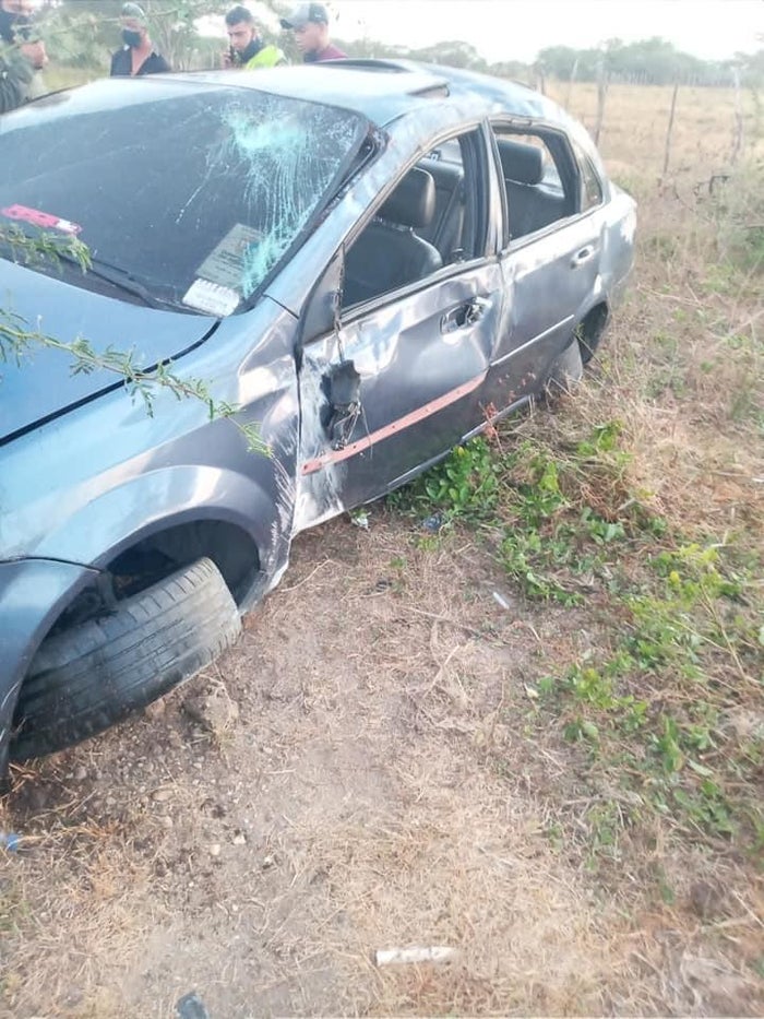De acuerdo con las autoridades, un vehículo marca Chevrolet Optra de color azul terminó por fuera de la carretera, al parecer por una impericia del conductor.
