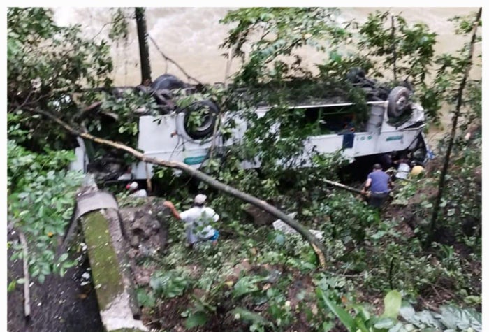 El siniestro vial deja dos personas heridas. El bus iba se trasladaba sin pasajeros, los heridos serían el conductor y su ayudante, quienes habrían perdido el control del vehículo antes de caer al abismo.