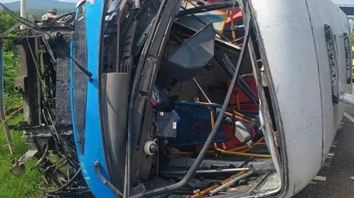 La parte frontal y la parte baja del vehículo quedaron totalmente destruidas, las autoridades investigan si el siniestro vial se debió a fallas mecánicas del vehículo.