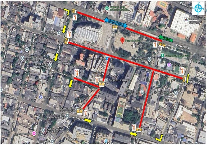 Los conductores tendrán como alternativas de desvíos la carrera 45, la calle 48 hasta la carrera 50 o 43, la carrera 46 sentido occidente-oriente, la calle 54 hasta la carrera 44 y la calle 53 entre 44 y 44B y tendrán acceso a los predios.