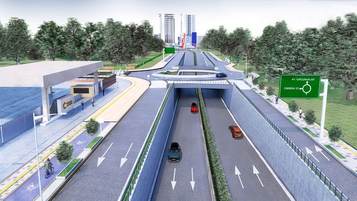 El proyecto de la Gran Vía contempla la construcción de 3.55 kilómetros en doble calzada y tres carriles, una ciclorruta, zona peatonal y dos pasos a desnivel o deprimidos: uno a la altura de la Universidad del Norte y otro en el centro comercial Le Champ.