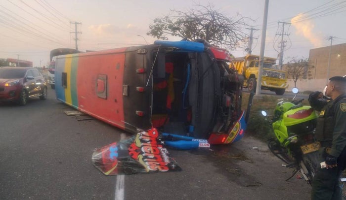 Al menos 21 personas lesionadas es el saldo del volcamiento de un bus de la empresa Cootransoriente, en la vía oriental, a la altura del aeropuerto Ernesto Cortizzos. Al parecer, el conductor del bus perdió el control y se salió de la vía.