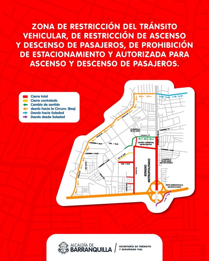 Ojo: medidas de movilidad este jueves 7 de septiembre por partido de la Selección Colombia en Barranquilla