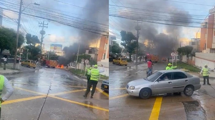 En el video que circula en redes sociales, se observa que llegan a hacer presencia en la emergencia el cuerpo de Bomberos de Barranquilla para controlar la conflagración.