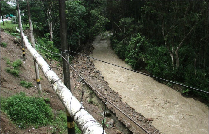 Estas obras que fueron recomendadas por el equipo de geólogos de la CAM, fueron ejecutadas por la Concesión Aliadas para el progreso y consistieron en la realización de cuatro tramos de dragado para corregir la sección hidráulica de la quebrada El Cedro y el río Guachicos y establecer con el mismo material (arena y piedra) jarillones de protección del talud de la vía que conduce al departamento del Putumayo.