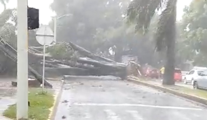 Las lluvias de esta tarde de domingo generaron varias emergencias en sitios de alto riesgo. La situación más delicada se vivió en la zona aledaña al coliseo Argelino Durán Quintero, donde un gigantesco árbol fue arrancado de raíz por el fuerte temporal.