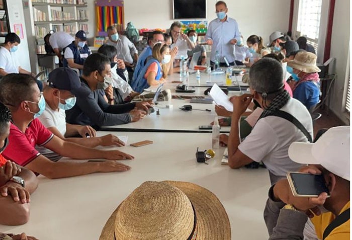 “Acabamos de firmar este acuerdo tan significativo, fueron más de 100 horas para instalar esta mesa, fueron varios compromisos adquiridos”, comentó el viceministro del Interior, Carlos Alberto Baena López.