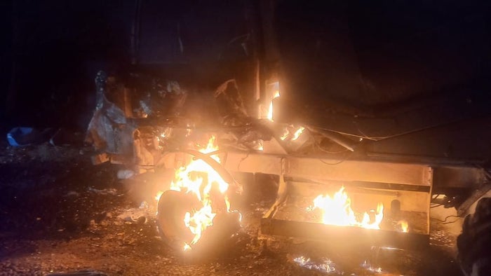 Las máquinas afectadas fueron una volqueta, un vibrocompactador y una Fiori, fundamentales para el desarrollo del proyecto de infraestructura vial que busca mejorar la conectividad en esta zona de difícil acceso. En el lugar de los hechos fue encontrada una bandera con los colores y símbolos del ELN, lo que refuerza la hipótesis de un ataque por parte de ese grupo armado ilegal.
