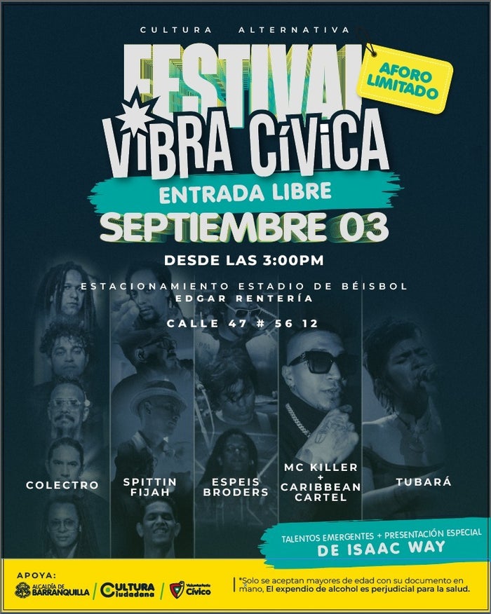La juventud barranquillera tiene una nueva forma de participar en procesos de cultura ciudadana, con el Festival #VibraCívica, este sábado 3 de septiembre, en el estacionamiento del estadio Edgar Rentería, en el popular barrio Montecristo.