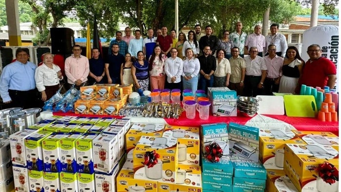 Según el funcionario, se entregaron herramientas de cocina esenciales como ollas, licuadoras industriales, neveras y estufas para fortalecer el servicio de restaurante escolar.