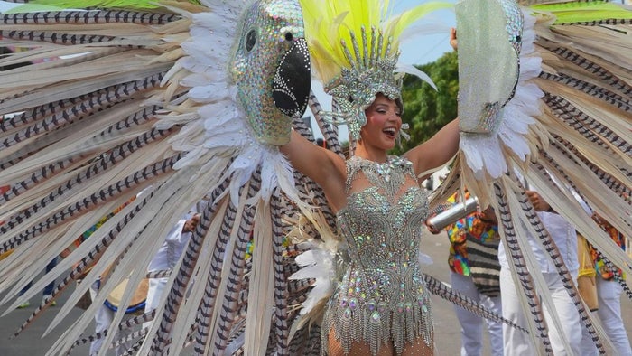 La soberana lució el diseño ‘Cacatúa en Carnaval’, creación del reconocido diseñador Alfredo Barraza, con el que “voló” por el cumbiódromo de la Vía 40, cautivando a miles de espectadores.